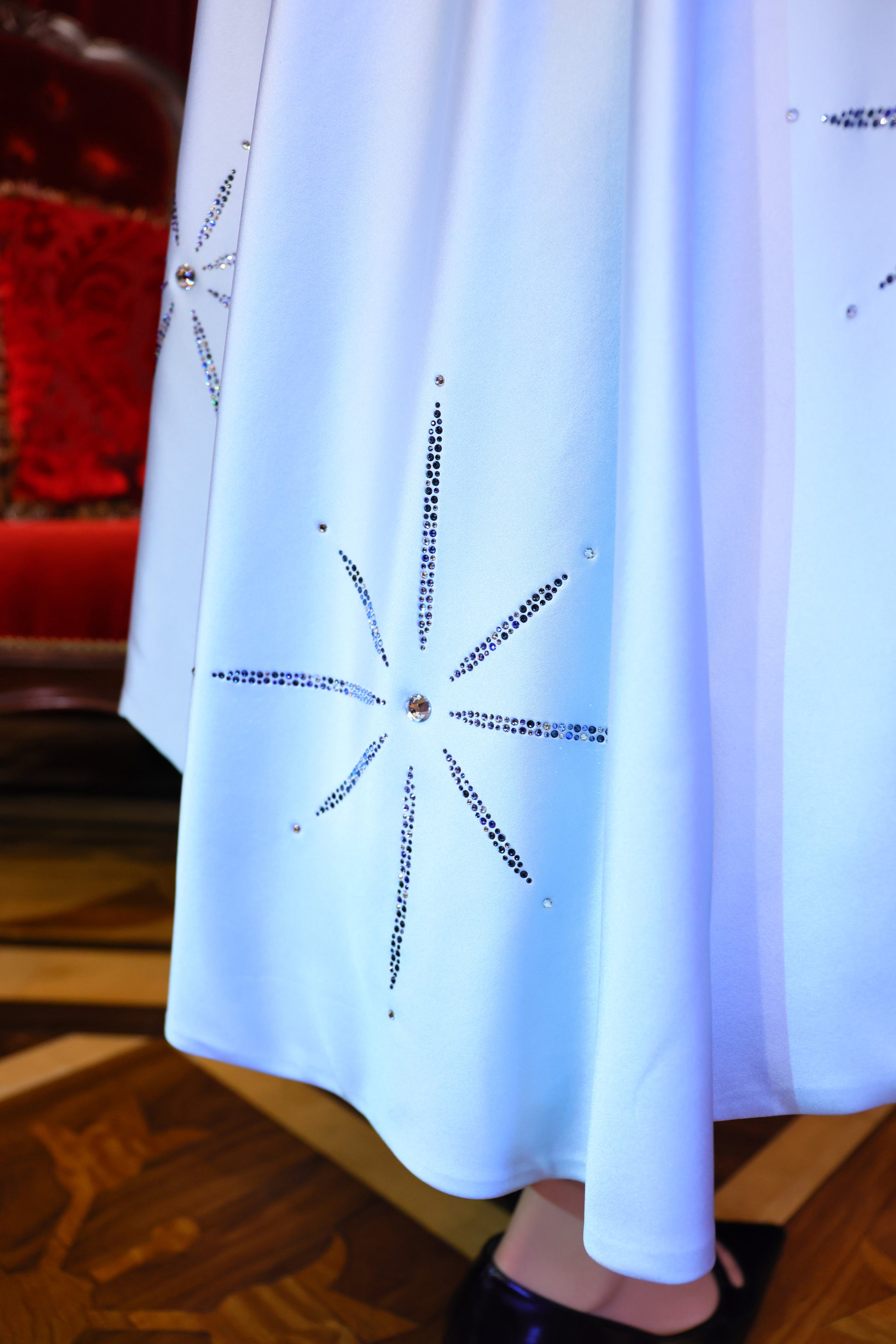 そして、裾に煌めくクリスタルストーン。