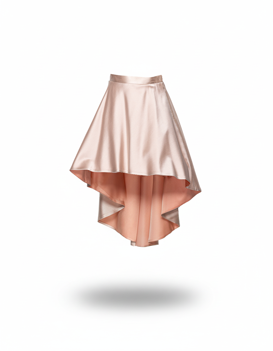 前後で丈を変えたシルエットは、動くたびに生地が揺らめき、少女のような天真爛漫さと、プリンセスのような可憐さを引き出します。