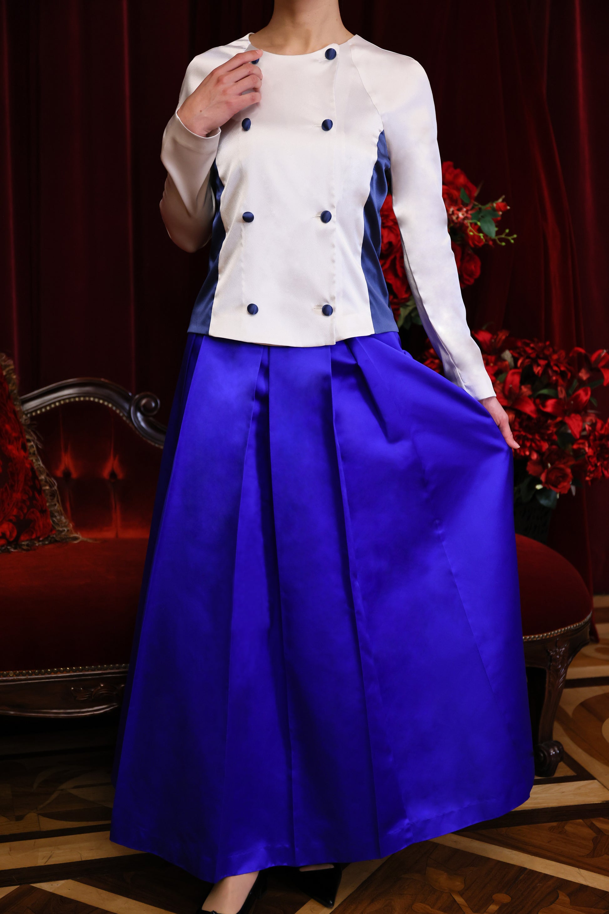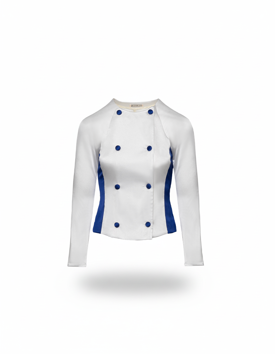 ボタンは全て体の中心軸に配置し、ブレない芯をもつ女性でありながら素直な自分で直感を取り入れ、自分達の中にある叡智を引き出してくれる特別な輝きを放つブラウスです。